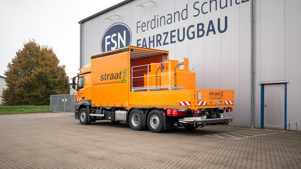 Mitte Juli haben wir diesen Pritschenaufbau an die Stadtentsorgung Rostock übergeben. Der Schiebeplanenaufbau ist auf der rechten Seite zusätzlich mit einer Seitentür ausgestattet, sodass die Ladefläche auch bei geschlossener Plane über eine Aufstiegshilfe von der Seite begehbar ist. Die Ladebordwand C1500S (1,5 t) ermöglicht die Beladung über das Heckportal. Eine weitere Besonderheit ist der Verschleißboden auf der Ladefläche aus Aluminium-Raupenblech.
